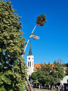 Am Samstag fand das traditionelle Kirtagsbaum-Aufstellen am Hauptplatz statt. Die Kirtagsburschen haben mit vollem Einsatz den 24 Meter hohen Kirtagsbaum - mit Hilfe einiger starker Männer aus